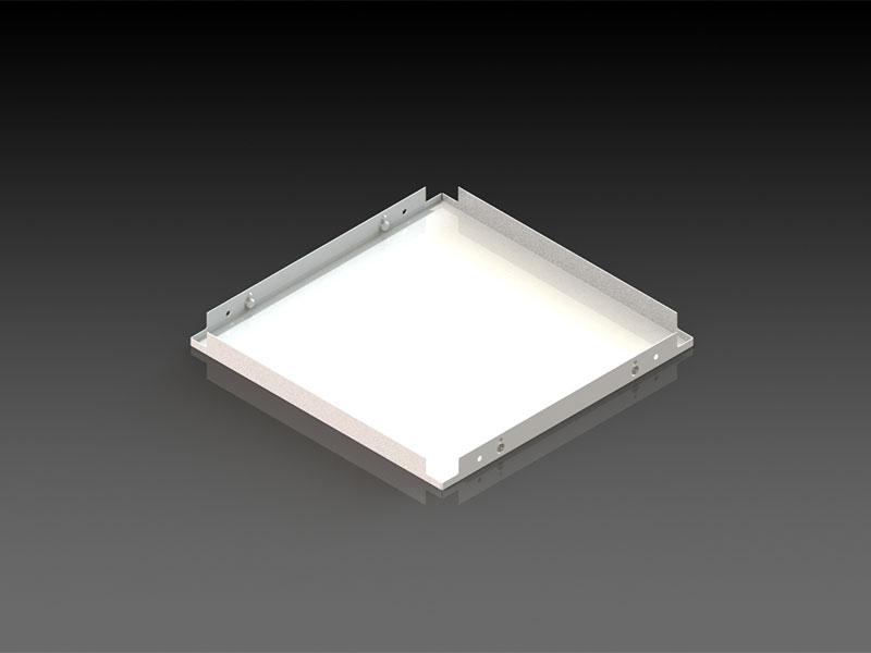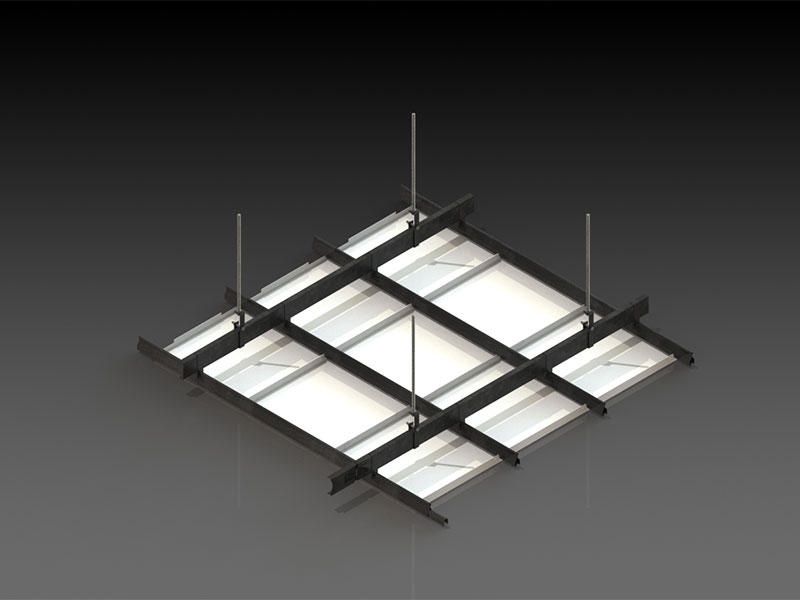 天花板有鋼質和鋁質兩種, 可沖孔, 可填充吸音, 隔熱, 阻燃材料等. 每一塊天花板都是獨立夾入, 特製的翻邊卡印跟A字龍骨配合, 使天花板更緊固, 密縫, 平整。